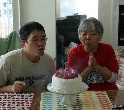 二人で蝋燭を消したところの写真です。