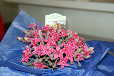 それと、母からは変わったサボテンの花です。ピンクの花がすごく可愛いのですが、サボテンなのでほとんど水は上げなくても良いみたいです。実際こんな花は初めて見ました。