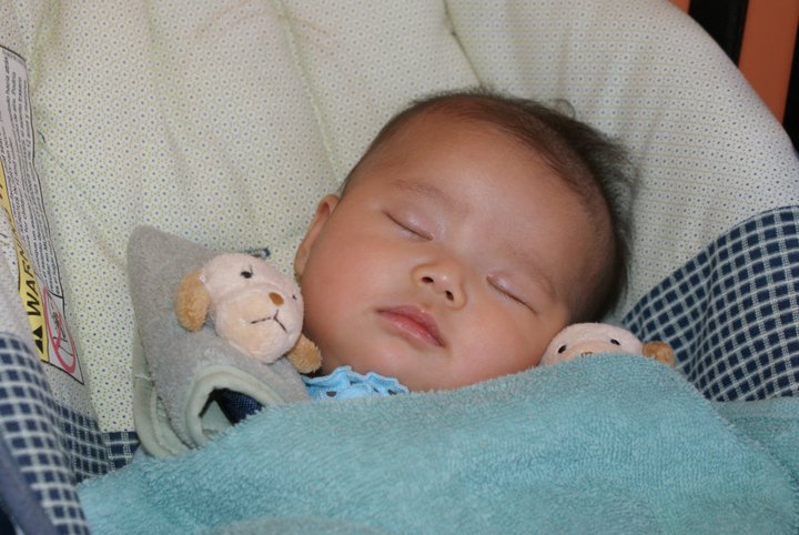 首が据わって、あやすと声を出して笑い、お気に入りのおもちゃをよだれでべとべとにしながら育っています。夜中にほとんど起きなくなったのは楽でいいわー。