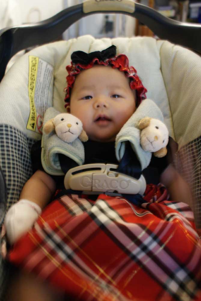 クリスマスで4ヶ月になる娘、本当に大きくなってきました。身長は64cm、普通?かちょっとでかいぐらいかな?体重は最近はかってないけど,持っている分にはかなり重くなってきた気がする。どのみち、27日に4ヶ月検診があるので、そんときには分かるだろう。なんか、母乳一本できてて、足りてんのかなーって心配になるけど、元気に育ってくれてるので一安心。