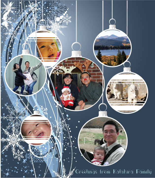 さて、今年もメール用の家族写真を作りました!本当にあっというまの1年だったなあ。なーんてしみじみしている時間はないんだけどね。あー、早くカード書かないとなあ。