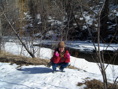 まだ山側はいっぱい雪が残っていたので、山道に入って行く方のトレイルへは行かず、小川の周りを歩く事だけに専念。それでも雪道だったのでゆっくり歩いて往復1時間かかりました。