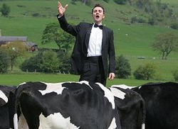 そして、牛のためにリサイタルを開いてくれることになったテノール歌手のベドニさんはこんな風に意気込みを語ってくれました。 「コンサートを楽しみにしていますよ。牛達はとても優しい獣で、オペラを聞く良い耳を持っています。彼らのために心休まるアリアやナポリタンの曲を選びました。ワーグナーやカルミナ・ブラーナのような刺激的な曲は避けています!」