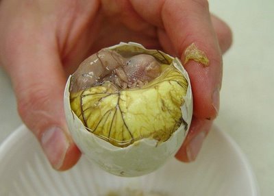 その下はふ化する前の鴨、アヒルの卵もそういうのあるよね。おいしいと聞くけど、食べたいとは思わない・・・・。