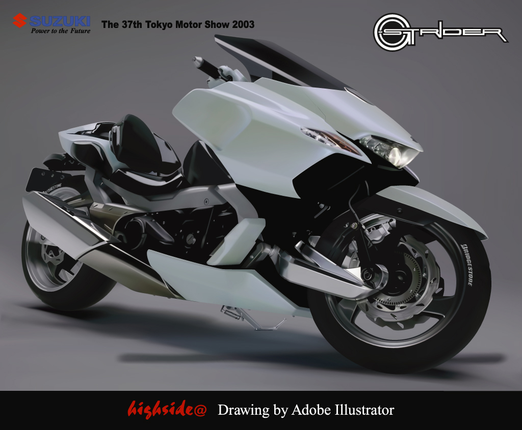 鈴木のGストライダーを書いてるんだけど、どっちが写真で、どっちがイラストかちょっと見ただけじゃわからないぐらいの出来映え。 すごすぎる!